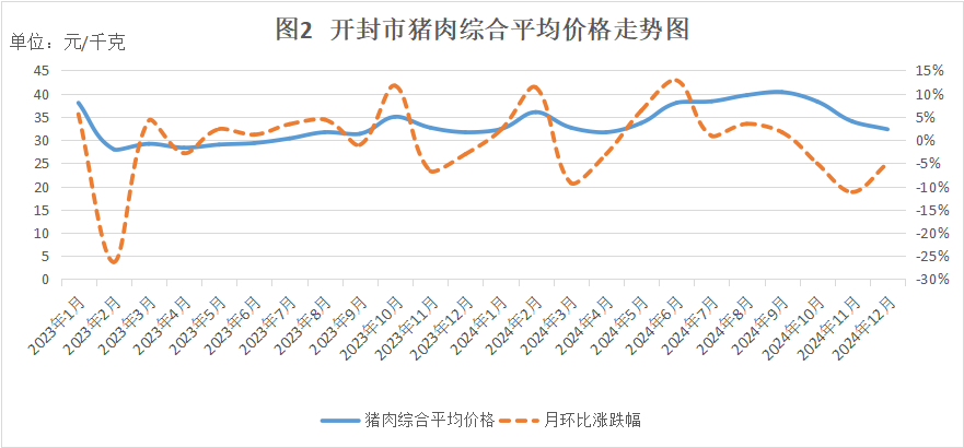 2024年全年猪肉均价为35.6元/千克,同比上涨14.1%。猪肉价格呈现中间高两头低,三季度处于高位,均价达到39.4元/千克。猪肉价格居高不下主要由于:一方面,生猪养殖去产能。根据农业农村部的数据,2023年生猪养殖行业亏损严重,导致母猪产能连续16个月下降,累计下降约11.0%,一季度生猪存栏数及出栏数分别较去年同期下降了约5.2%和22.0%,市场供应相对减少,推动价格上涨。另一方面,从2023年底开始,玉米等主要饲料原料价格持续攀升,饲料成本在养猪成本中占比较大,其价格上涨增加了养殖成本,进而推动猪肉价格上升。