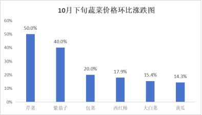 蔬菜价格环比“6升7平”。其中,芹菜6元/kg、紫茄子7元/kg、包菜3.6元/kg、西红柿6.6元/kg、大白菜3元/kg、黄瓜8元/kg,分别较中旬上涨50.0%、40.0%、20.0%、17.9%、15.4%、14.3%;土豆3.6元/kg、白萝卜2元/kg、大蒜8元/kg、平菇10元/kg、大葱3元/kg、生姜13元/kg、胡萝卜3元/kg,与中旬价格持平。