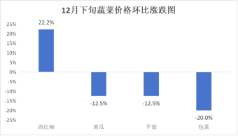 蔬菜价格环比“3降1升9平”。其中,包菜4元/kg、黄瓜7元/kg、平菇7元/kg,分别较中旬下降20.0%、12.5%、12.5%;西红柿11元/kg,较中旬上涨22.2%;白萝卜2元/kg、大葱4元/kg、大蒜10元/kg、大白菜3元/kg、芹菜5元/kg、土豆3.6元/kg、紫茄子7元/kg、胡萝卜4元/kg、生姜14元/kg,与中旬价格持平。