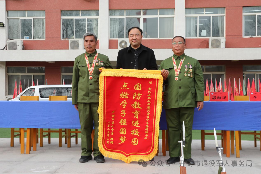 开封市退役军人事务局党组成员、副局长厉瑞光,市教育体育局党组成员、副局长张昱,市退役军人服务中心主任鲁腾飞,开封市第十中学校长余永锋等领导出席活动。