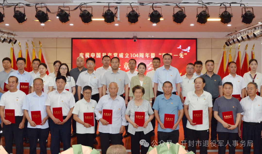 为隆重庆祝中国共产党成立104周年,弘扬伟大建党精神,7月1日,开封市退役军人事务局举行“庆祝中国共产党成立104周年暨‘两优一先’表彰大会”。局党组成员、市纪委监委派驻纪检组、局系统在职工作人员及军队离退休优秀党员代表参加活动。