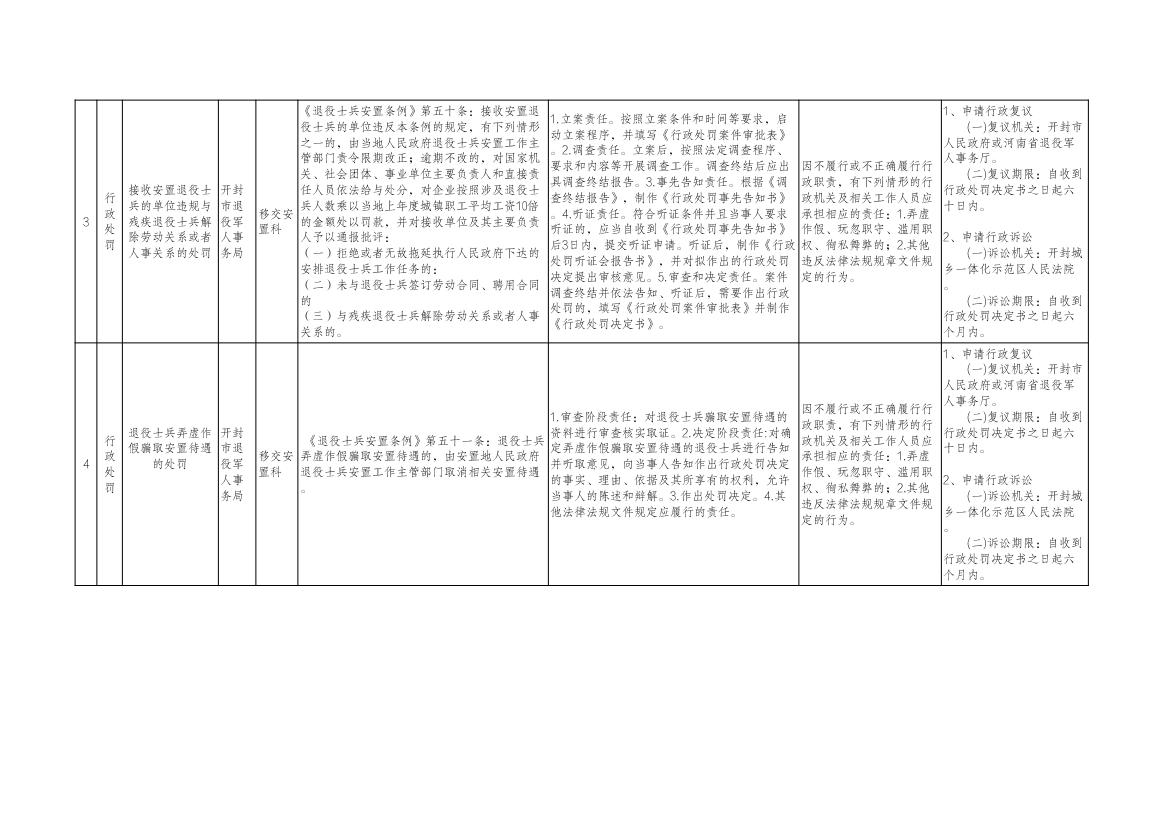 开封市退役军人事务局行政处罚事项清单