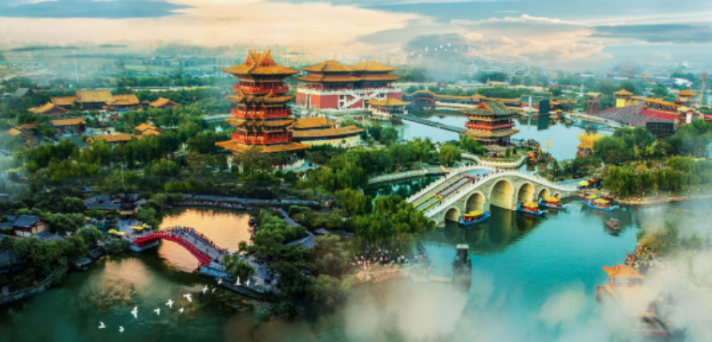 清明上河园是以宋代名画《清明上河图》为蓝本的大型历史文化主题公园,坐落在开封市龙亭湖西岸,是国家首批5A级旅游景区和中国非物质文化遗产展演基地。
