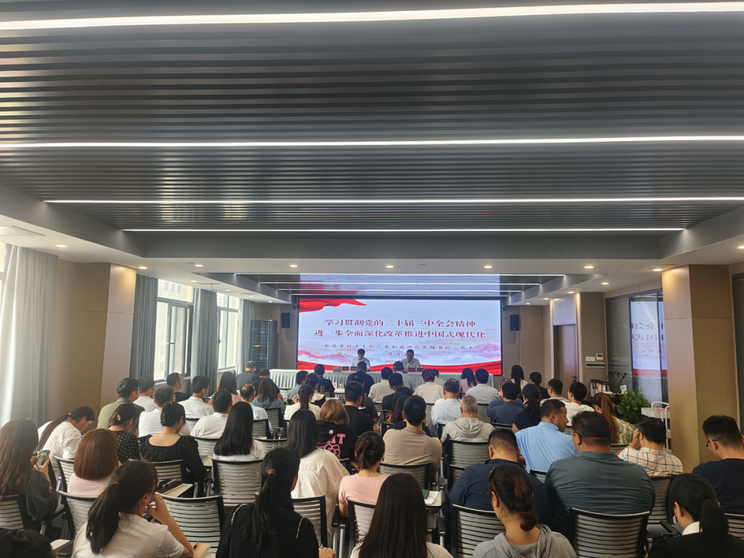 9月20日,学习宣传贯彻党的二十届三中全会精神宣讲报告会在开封市文投集团举行,市委宣讲团成员,市文化广电和旅游局党组书记、局长陈连富以《学习贯彻党的二十届三中全会精神 进一步全面深化改革推进中国式现代化》为题作宣讲辅导报告。市文化广电和旅游局县处级领导干部、机关科室负责人、机关全体党员以及文投集团中层以上人员参会。市文投集团党委副书记、总经理宋锐主持会议。