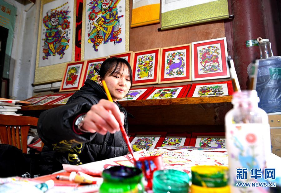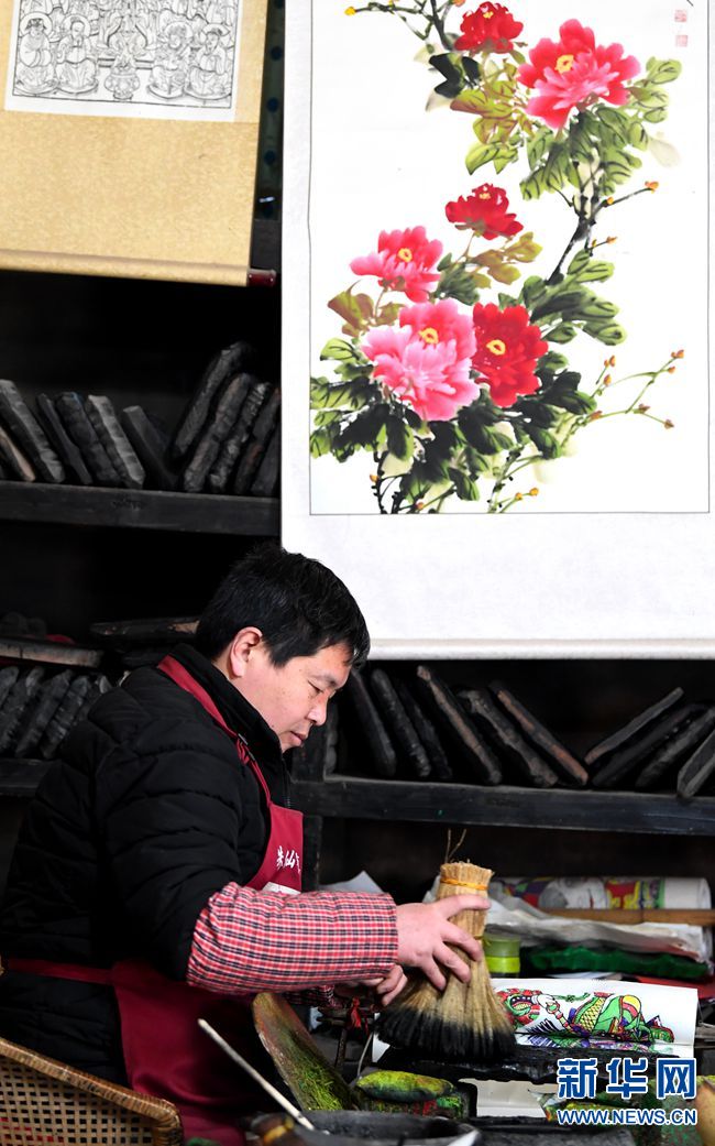 临近春节,河南省开封市朱仙镇的木版年画作坊抓紧制作年画,为新春市场做准备。朱仙镇木版年画制作工序讲究,具有造型夸张、线条粗犷、色彩艳丽的艺术特色,2006年被列入第一批国家级非物质文化遗产名录。(新华社记者 郝源 摄)
