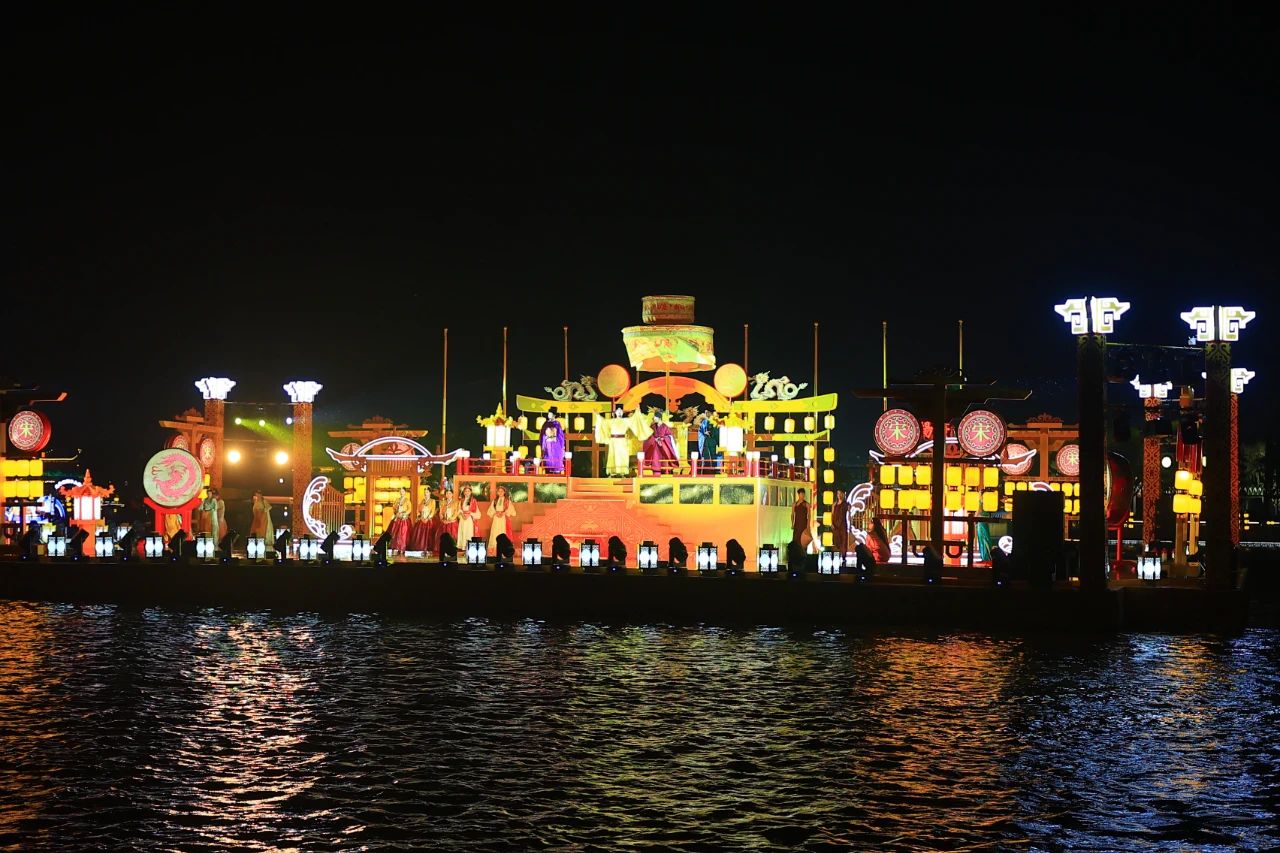 大型水上实景演出“泱泱宋潮”以龙舟争标的激昂场景开篇,至八方争奏彰显开放包容的文明对话收束,将大宋王朝的盛世风华浓缩于水光潋滟之间。
