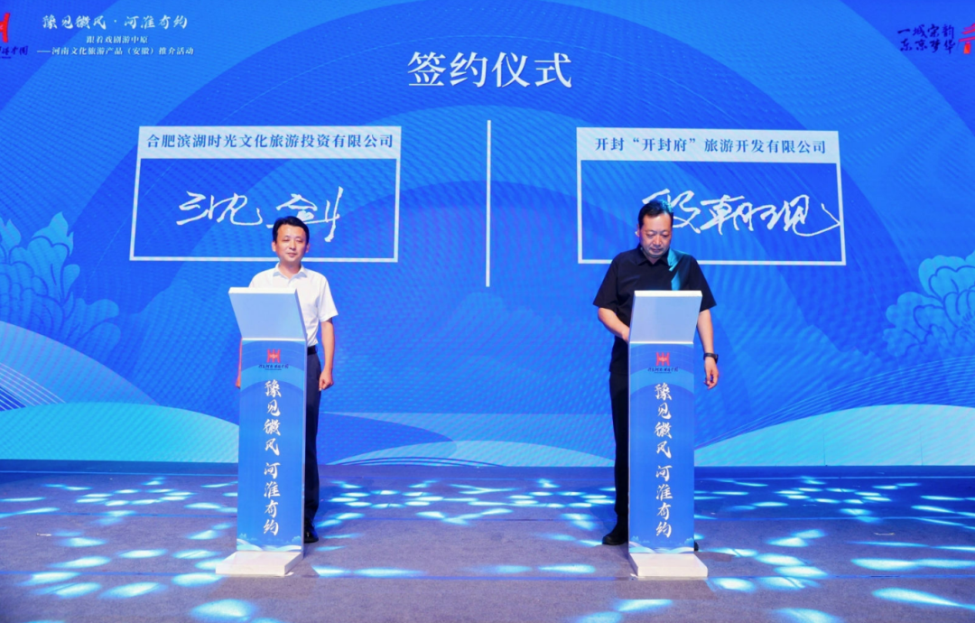 活动现场,合肥滨湖时光文化旅游投资有限公司常务副总经理沈剑代表合肥包公文化园与开封府旅游开发有限公司董事长段朝现代表开封府签署了文旅合作战略协议,标志着两地文旅合作迈上新的台阶,将为两地的旅游业发展带来新的机遇。