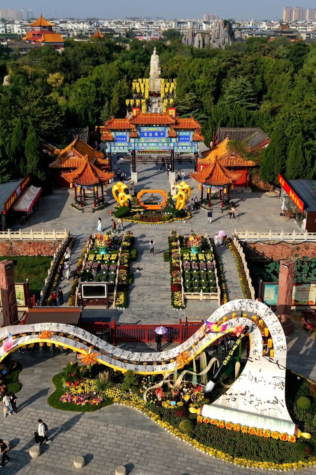 谁说赏菊只能岁月静好?作为中国开封第43届菊花文化节分会场,今年万岁山武侠城直接把江湖搬进菊展。