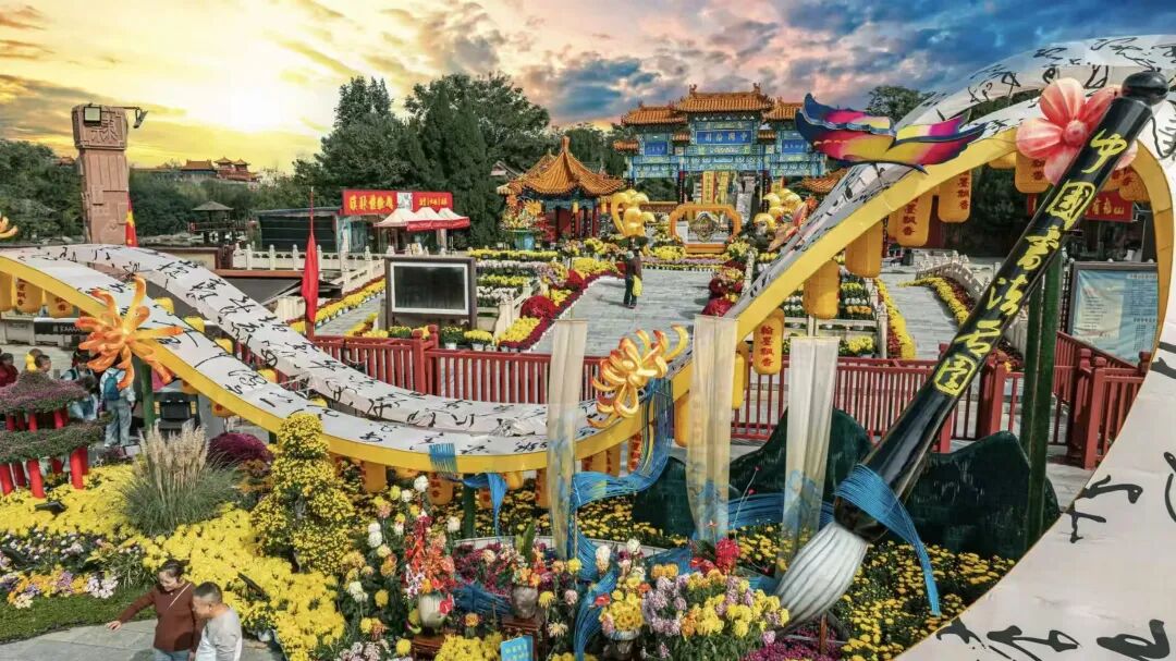 十里花廊沿北大门蜿蜒,顶级菊艺大师展让每一步都踏在花香里;南门广场的全国菊艺精英汇,以菊为媒再现宋代雅集的浪漫;千菊展中,稀有品种与武侠元素碰撞,库顶花海营地的“菊韵海洋”,花瀑倾泻、花廊蜿蜒,尽显江湖柔情。
