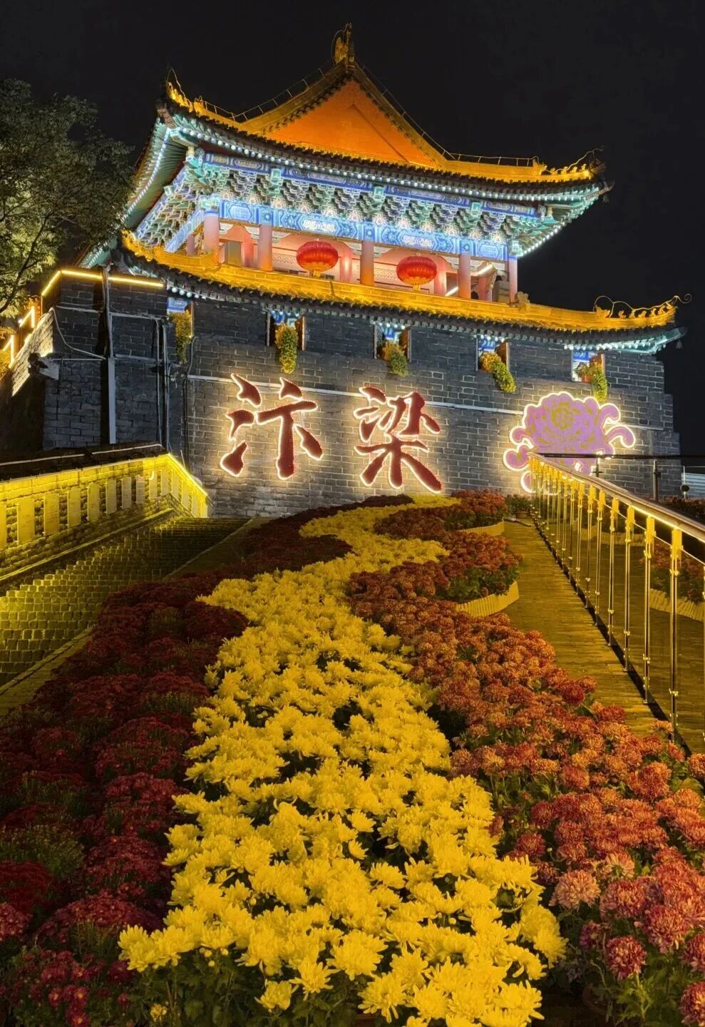 8万盆红玉、春日见山等精品菊花,将这座千年府衙装点得古意盎然。每日60余场沉浸式节目轮番上演,从实景剧目到行进式演出,带你感受宋代官场的威严与市井的鲜活;夜间《南衙千秋月》实景演出,水幕、灯光与舞蹈交织,打造震撼视听的宋式美学盛宴,参与互动赢“官银”换礼品,更添游玩乐趣。