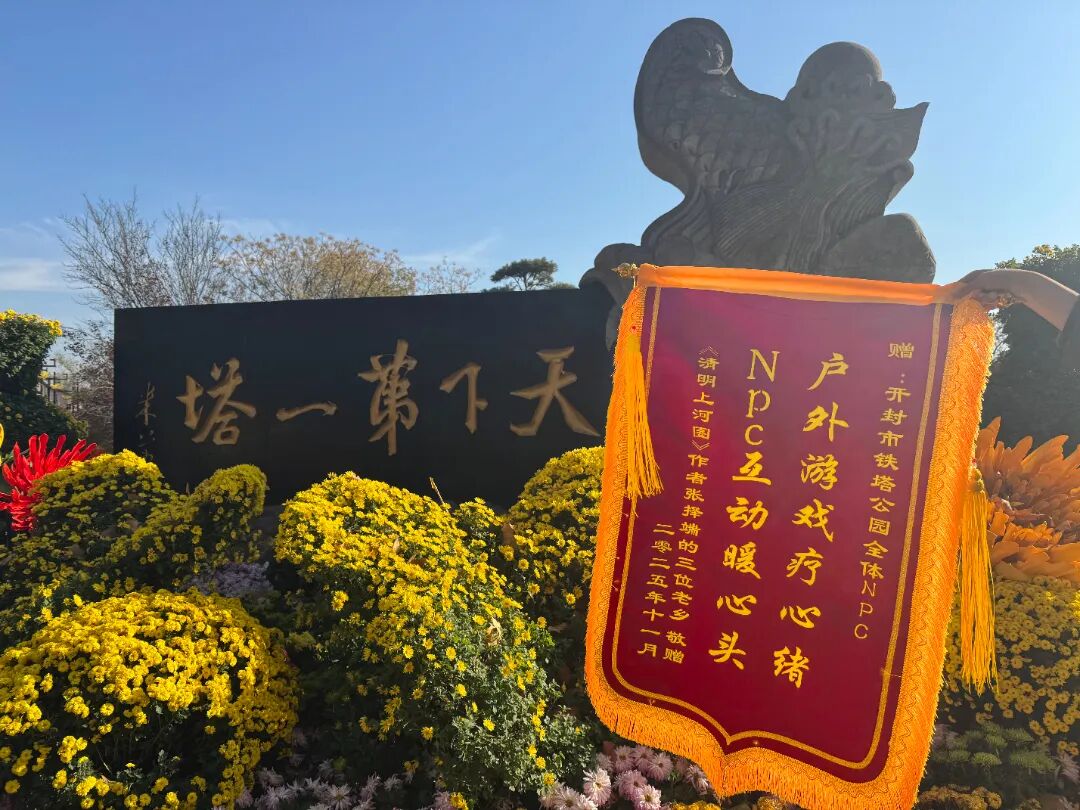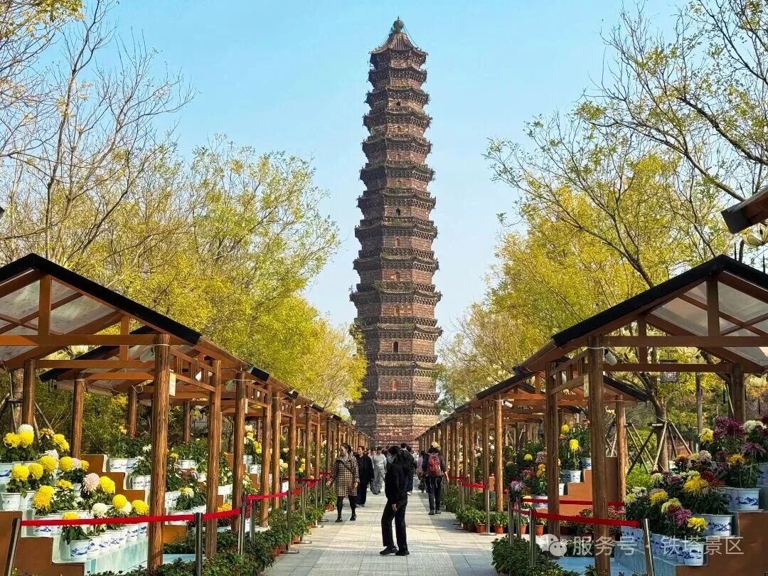 步入景区,层层叠叠的菊花缀满步道两侧、环绕石狮脚下,将千年铁塔的厚重与秋菊的灵动巧妙融合。今年10月,第十五届中国菊花展览会暨中国开封第43届菊花文化节盛大启幕,作为分会场的开封铁塔景区正以千年铁塔为骨、万株秋菊为魂,精心铺展一幅“一塔一菊韵一步一宋风”的文化画卷,让每一位慕名而来的游客都能沉浸式感受古都的独特魅力。