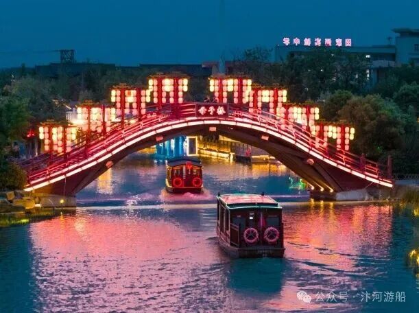 汴河游船现有画舫船、摇橹船、双层画舫船等多种船型,共设登船码头9处,游客乘船游览,可直达景区。夜游汴河是这座古城的正确打开方式,当画舫缓缓启航,仿宋古桥在灯光映照下流光溢彩,宛如星河坠入人间。