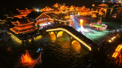 当夜幕降临,启封故园换上璀璨盛装,夜游活动更让游客沉醉其中。实景节目《水花秀》通过技艺演绎,将朱仙镇的历史故事与民俗风情生动呈现。