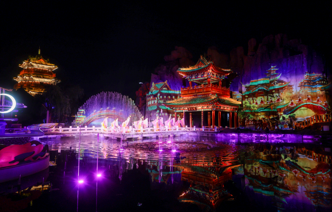 开封府景区经过两年多精心筹备的沉浸式夜间大型实景演出《南衙千秋月》深度融合美学造景、幻影水舞、真人表演、音画诗剧等多元创新形式,打造出虚实交互的独特沉浸式幻戏游园体验。