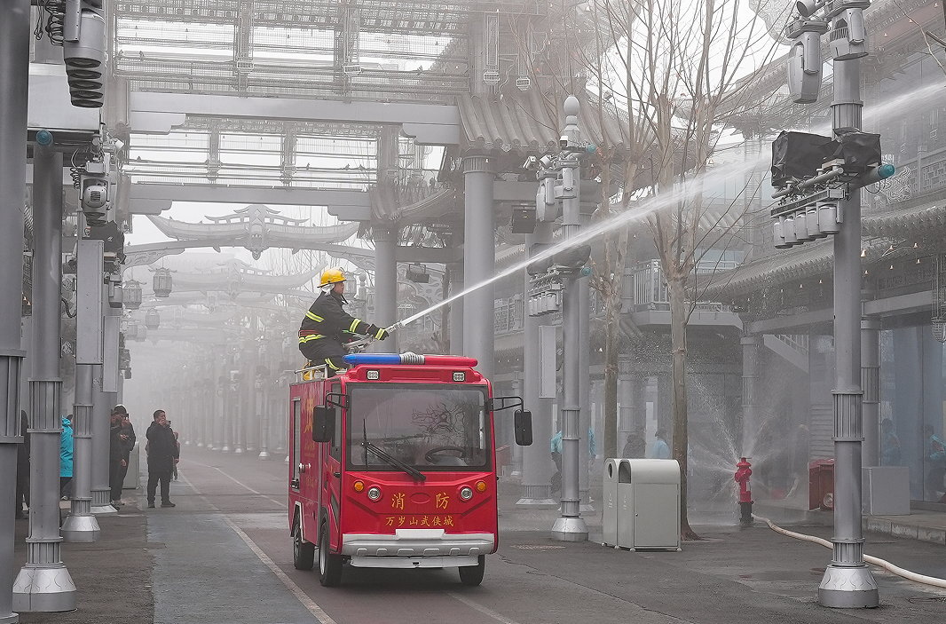 本次演练分三个阶段进行:发现火情后,景区首先启动应急预案,积极组织人员疏散、隔离警戒、灭火救援;消防、公安、医疗等专业救援力量到达后,开展专业灭火和救援工作;属地政府有关部门同步开展游客情绪疏导等善后工作。