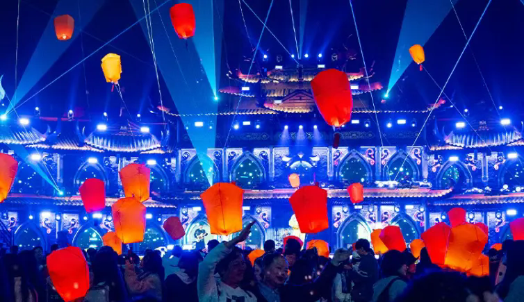 园区将继续以“第九届国际灯笼展”为核心,深度融合“新春民俗、上元灯会、欢乐巡游、大宋百戏”四大板块,为游客打造灯火璀璨、宋韵流淌的元宵佳节沉浸式体验。