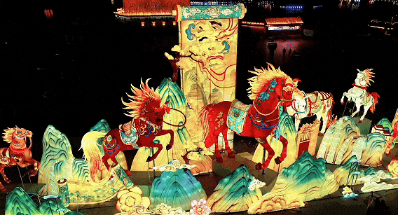 不仅创新呈现宋代千年绝艺鳌山灯,更有《八骏呈祥》《宋瓷雅韵》等9大主题灯组,融合传统祥瑞与宋代美学,园内光影成诗,步步穿越,随手一拍都是大片。