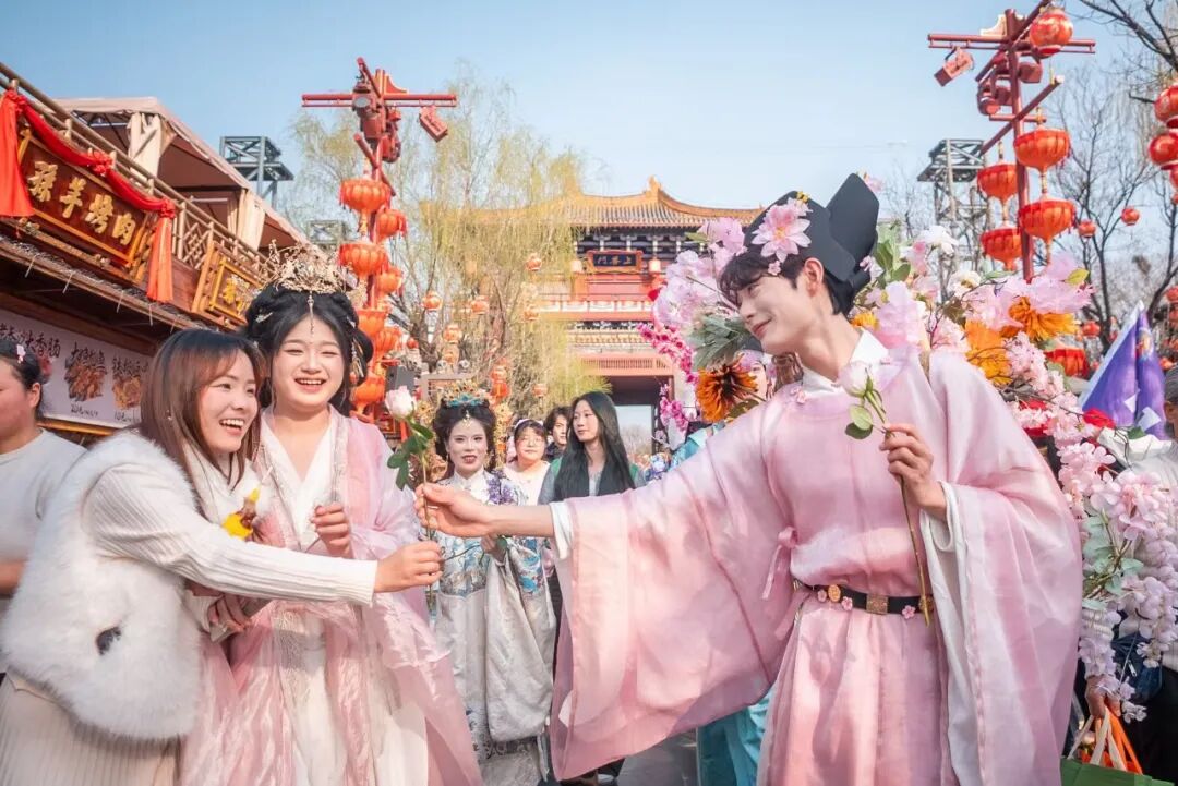5.春日簪花礼:簪花郎、簪花花神互动,趣味十足。