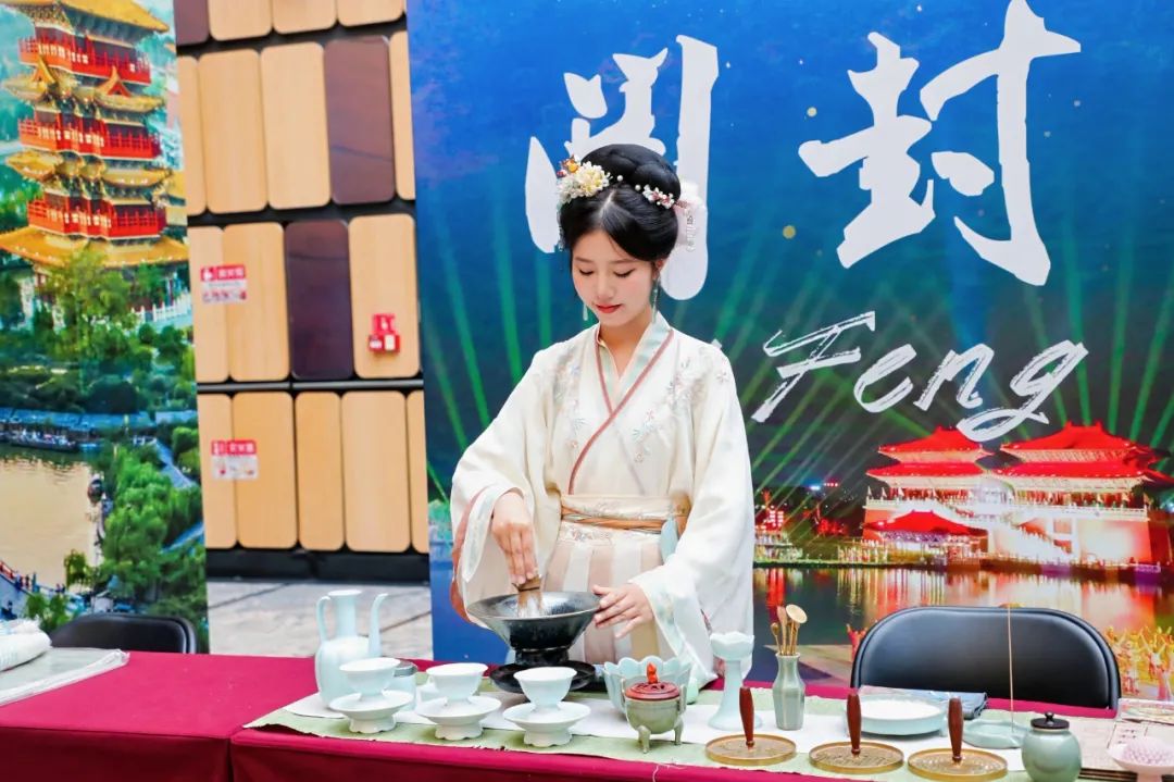 为让游客更深入了解河南文化,活动现场还设置了多个非遗文创互动体验区。琳琅满目的文创产品、地道的河南美食、点茶技艺、瘦金体书法吸引济南市民停留驻足,切身感受河南文化的魅力。