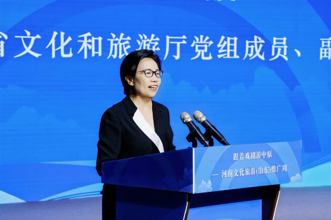 “豫鲁两地亲如一家,文化同根同源。”周耀霞在致辞中饱含深情地说,河南与山东同为黄河文化的重要发祥地,在文化艺术领域有着诸多璀璨的瑰宝。豫剧与吕剧,山东快书与河南坠子,皆是黄河流域文化百花园中娇艳的花朵;历史上贯通南北的大运河,如今飞驰的济郑高铁,都是连接两省的“黄金纽带”。本次活动大胆创新,首次将推介场地从传统的“商圈商场”转移至充满艺术氛围的“艺术剧院”,通过极具感染力的豫剧沉浸式演出,采取“购演出票、送景区门票”的新颖形式,实现旅游推介与舞台艺术演出的深度融合。周耀霞热情地向“好客山东”的老乡们发出邀请:“乘着高铁来河南”,亲身感受“老家河南”的无限魅力。