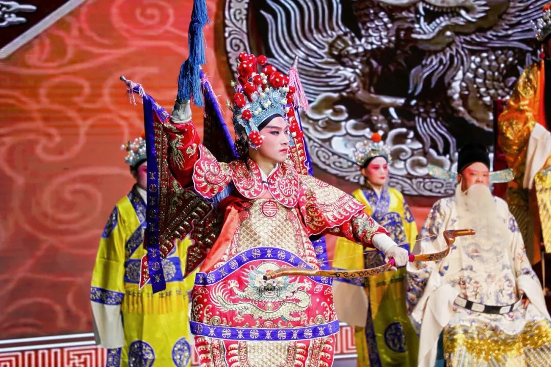 “辕门外三声炮如同雷震,天波府里走出来我保国臣。头戴金冠压双鬓,当年的铁甲我又披上了身。帅字旗,飘入云,斗大的“穆”字震乾坤……”当穆桂英身披银甲、红绸翻飞亮相舞台的瞬间,全场气氛瞬间被点燃,热烈的掌声与喝彩声交织成浪,将整场活动的氛围彻底推向沸腾顶点。