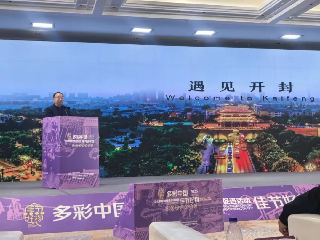 开封市文化广电和旅游局党组成员、副局长刘东代表开封作入境游线路推介。线路围绕开封触摸传统文化根脉,探寻非遗传承与传统技艺;在古今交融的新场景中,让历史在演艺与互动中 “活” 起来。