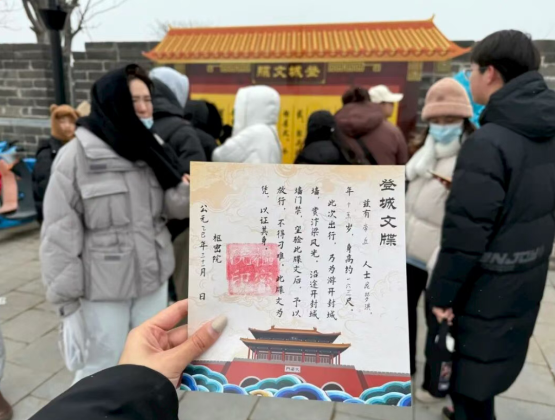 可以免费领取登城文牒,纸质精美、设计雅致,既可打卡留痕,又能作为旅行纪念把城墙的故事与年味一并收藏。