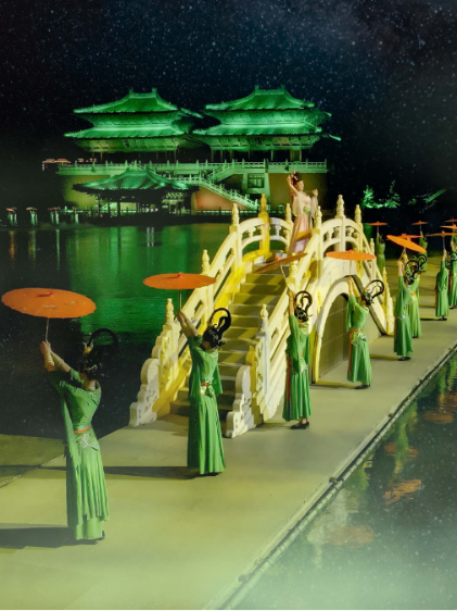 乘着晚风跳上汴河游船,带你尽享北方水城的独特魅力。途经虹桥时仰头,仿佛听见《清明上河图》里的吆喝穿透时空。在水上市集、银丝古建、东湖岛等打卡点,岸边的歌舞声踩着水波跃上甲板,这动人夜色在古城定格成一幅画。