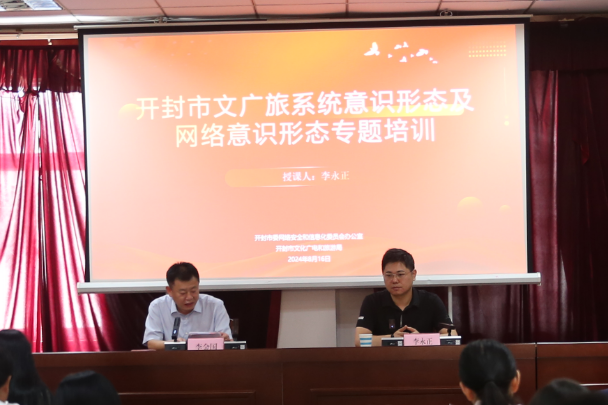 为深入学习贯彻习近平新时代中国特色社会主义思想和党的二十届三中全会精神,增强“四个意识”、坚定“四个自信”、做到“两个维护”,不断提升干部职工在意识形态工作中积极面对新情况新问题、应对新风险新挑战的能力,唱响主旋律,坚守主阵地,凝聚正能量,发出好声音。8月16日,开封市文化广电和旅游局举办2024年度意识形态暨网络意识形态专题培训班。来自文广旅系统的近百余名党员干部和从业人员参加了此次培训,局党组成员、副局长、机关党委书记李金国主持会议并讲话。