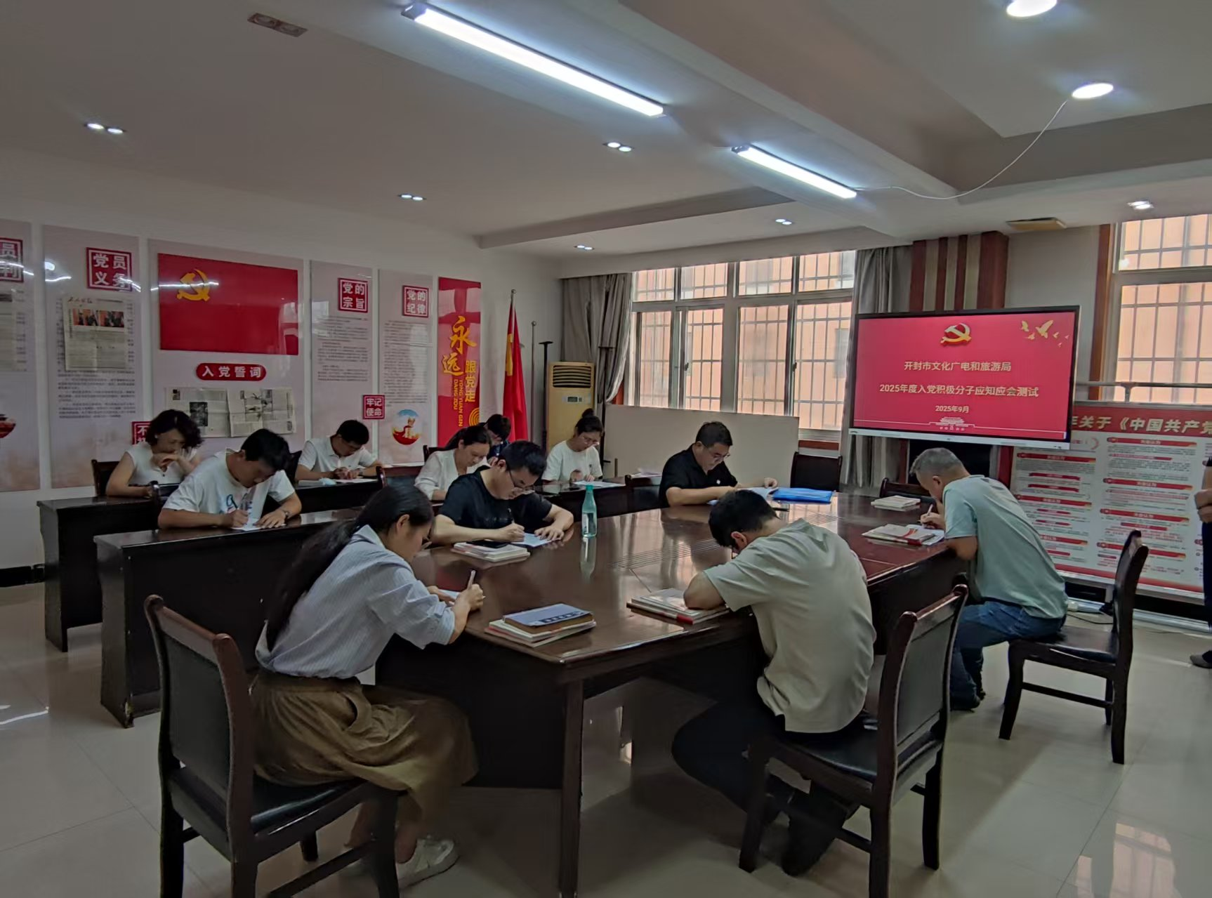 开封市文化广电和旅游局注重入党积极分子的教育培养,在上级党组织支持下引导入党积极分子进一步端正入党动机,加强党性修养,主动接受党组织的考验,争取早日成为一名合格的中国共产党党员。通过“以训促学”“以考促学”等方式,进一步坚定干部职工理想信念,牢记初心使命,为党建引领基层高效能治理作出积极贡献。