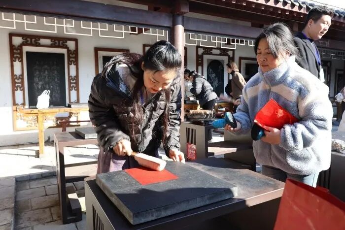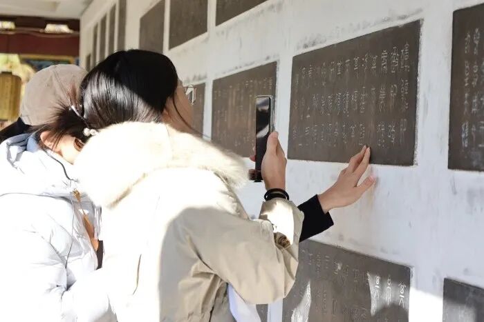 走进中国翰园碑林,大家漫步碑林之间,领略秀美风光,与书法大师亲密互动,更在殷商甲骨文及历代碑刻前驻足品味,细细感悟书法艺术的精妙。甲骨文、百家姓、十二生肖、唐诗宋词、名言警句……多样碑刻迅速吸引外国粉丝上手体验。中央广播电视总台罗马尼亚语萝卜工作室主播李昕表示:“欧洲人对中国传统文化尤其是书法艺术兴趣浓厚。我们将推出书法主题视频,助力国际观众更好地欣赏与理解这门古老艺术。”