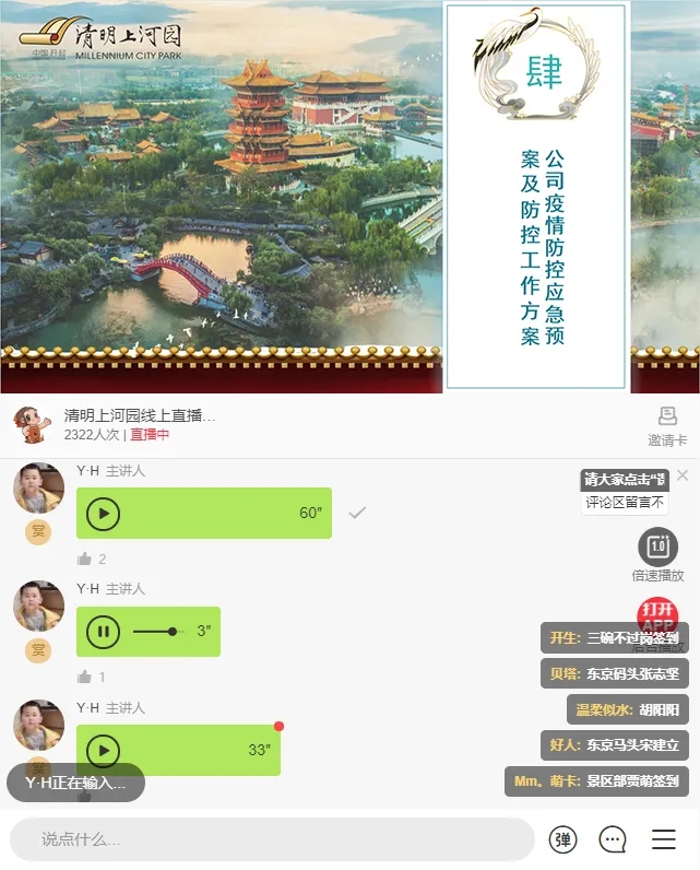 线上培训,线下练兵。清明上河园全体员工充分苦练内功,提升素质。景区通过开展线上培训及线下练兵等方式,加强防疫必备知识及应急处置预案的培训,全面提升服务质量、管理水平和突发事件应急处理,以全新的面貌、更好的状态迎接开园复工的到来。