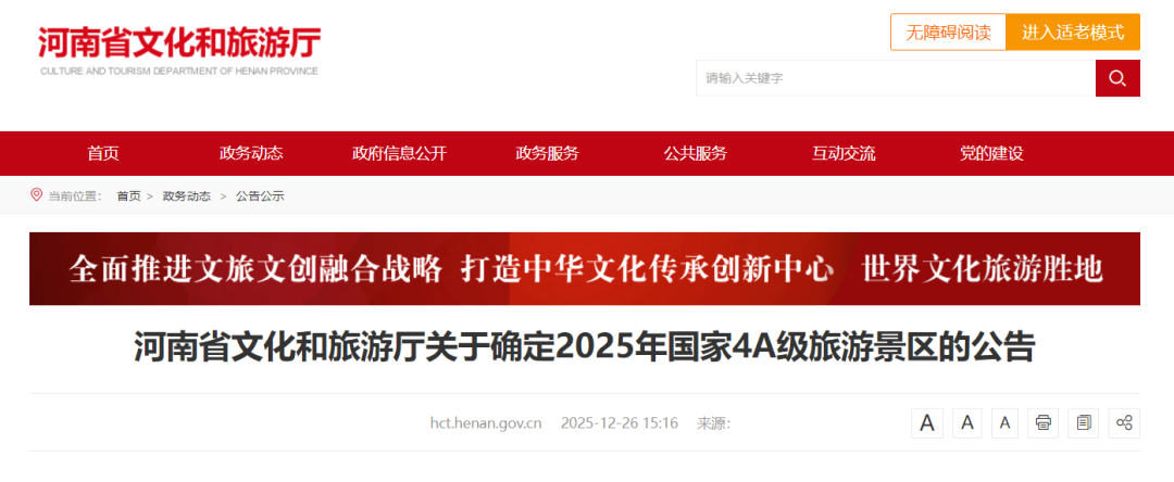 河南省文化和旅游厅发布