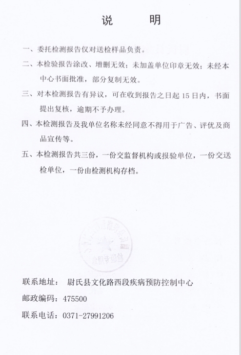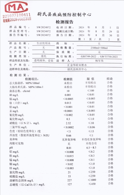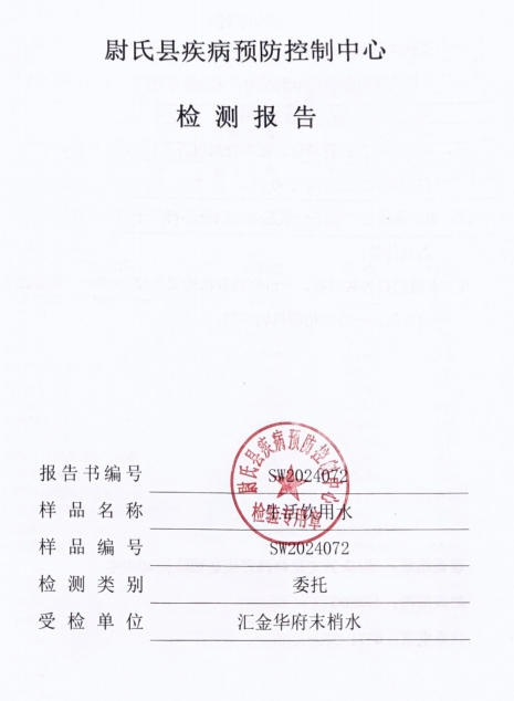 尉氏县疾病预防控制中心检测报告(汇金华府末梢水)第三季度