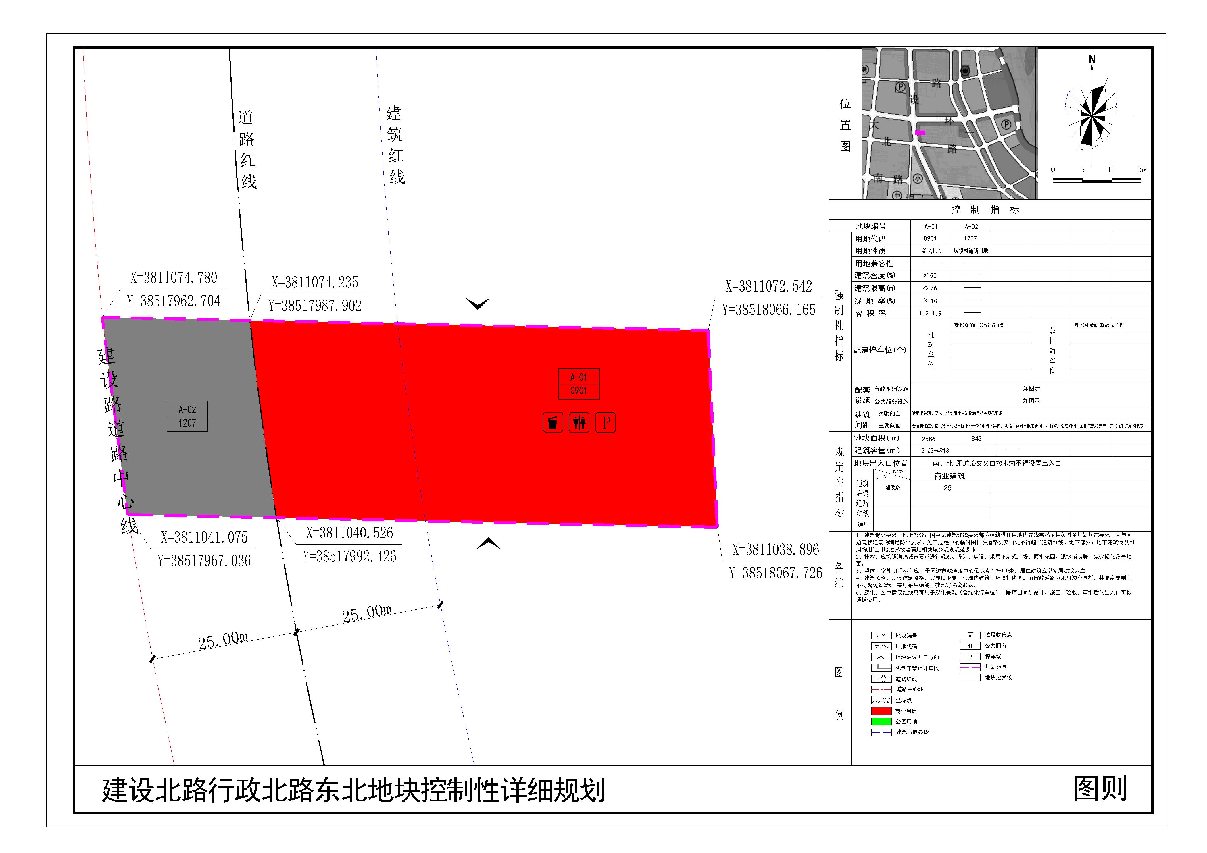 建设北路行政北路东北地块位于尉氏县建设北路东侧(御景城西南角未批规划手续宗地),规划范围内用地性质为商业用地、城镇村道路用地。详见附图“建设北路行政北路东北地块控制性详细规划(图则)”。