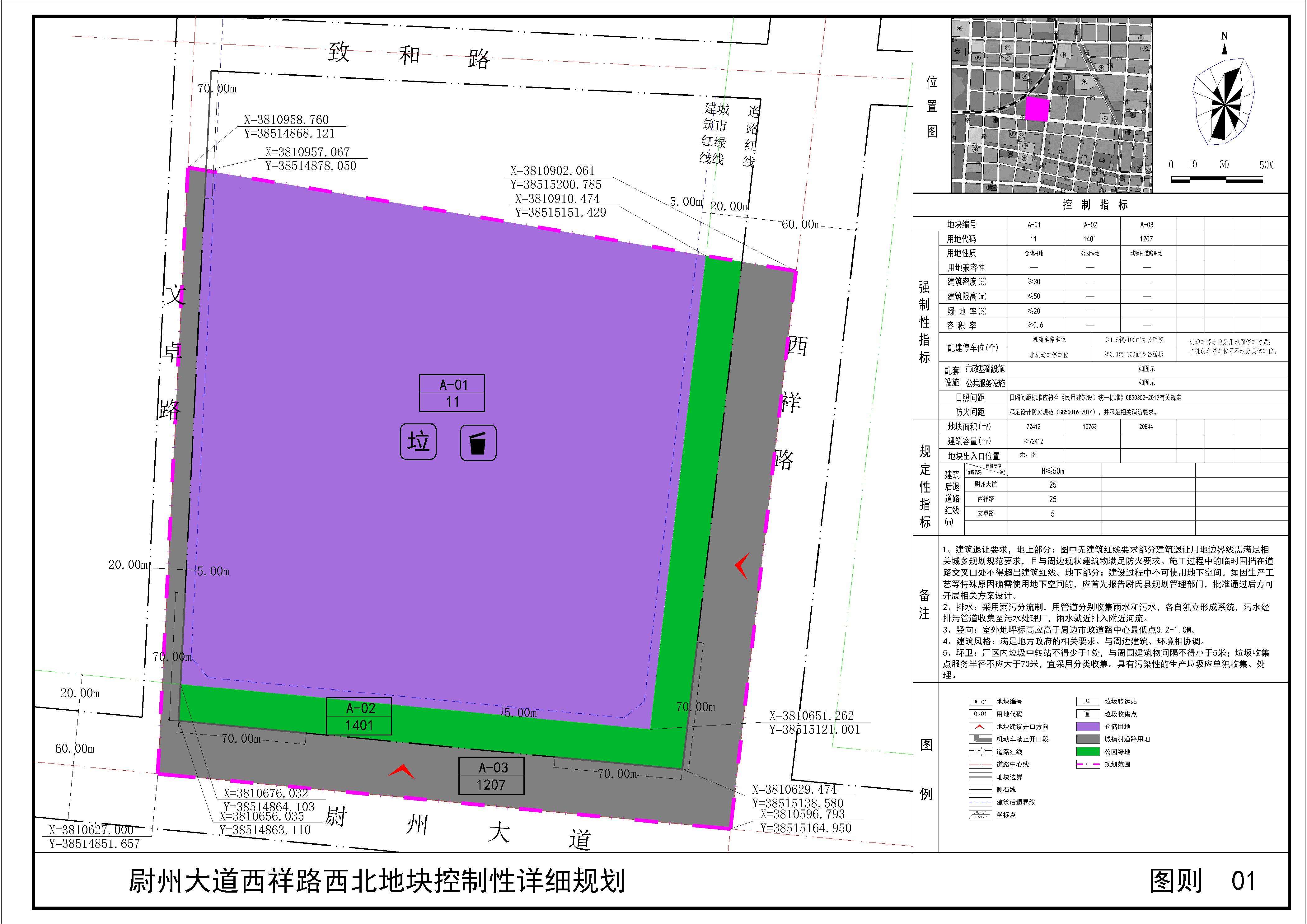 尉州大道西祥路西北地块位于尉氏县西祥路与尉州大道交叉口西北,规划范围内用地性质为仓储用地、公园绿地、城镇村道路用地。详见附图“尉州大道西祥路西北地块控制性详细规划(图则)”。