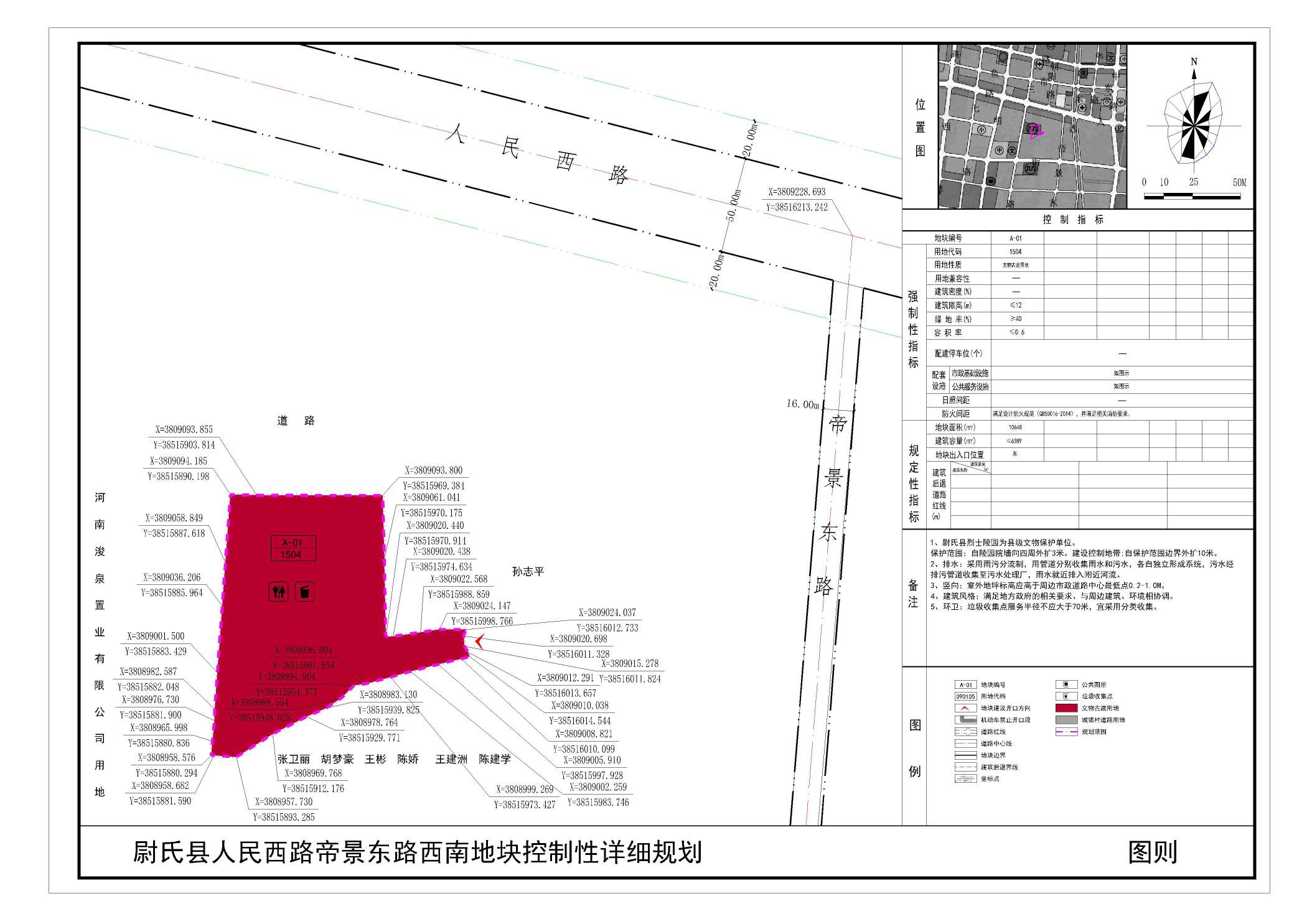 尉氏县人民西路帝景东路西南地块位于尉氏县人民西路与帝景东路西南,规划范围内用地性质为文物古迹用地。详见附图“尉氏县人民西路帝景东路西南地块控制性详细规划(图则)”。
