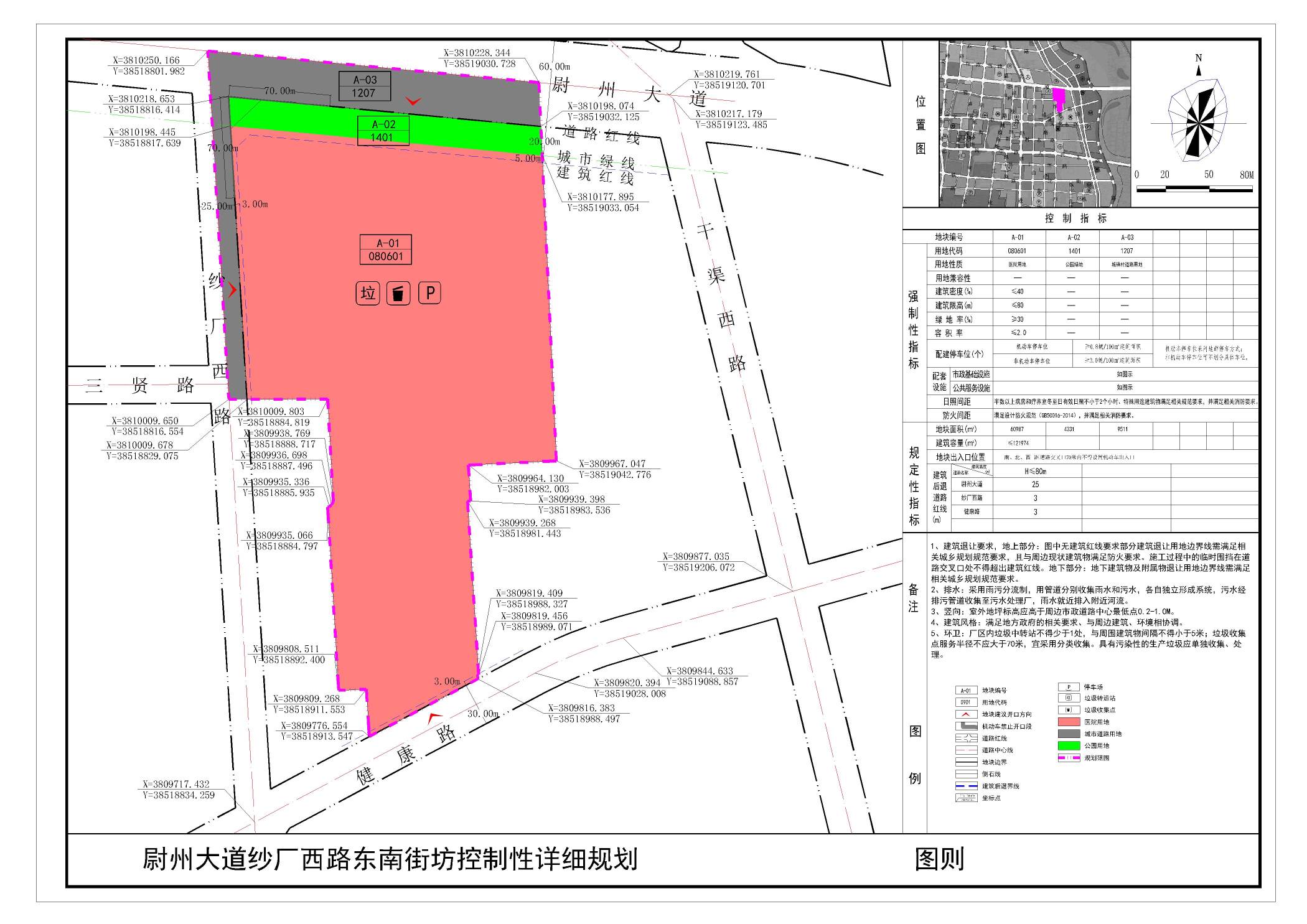尉州大道纱厂西路东南街坊位于尉州大道与纱厂西路东南,规划范围内用地性质为医院用地、公园绿地、城镇村道路用地。详见附图“尉州大道纱厂西路东南街坊控制性详细规划(图则)”。