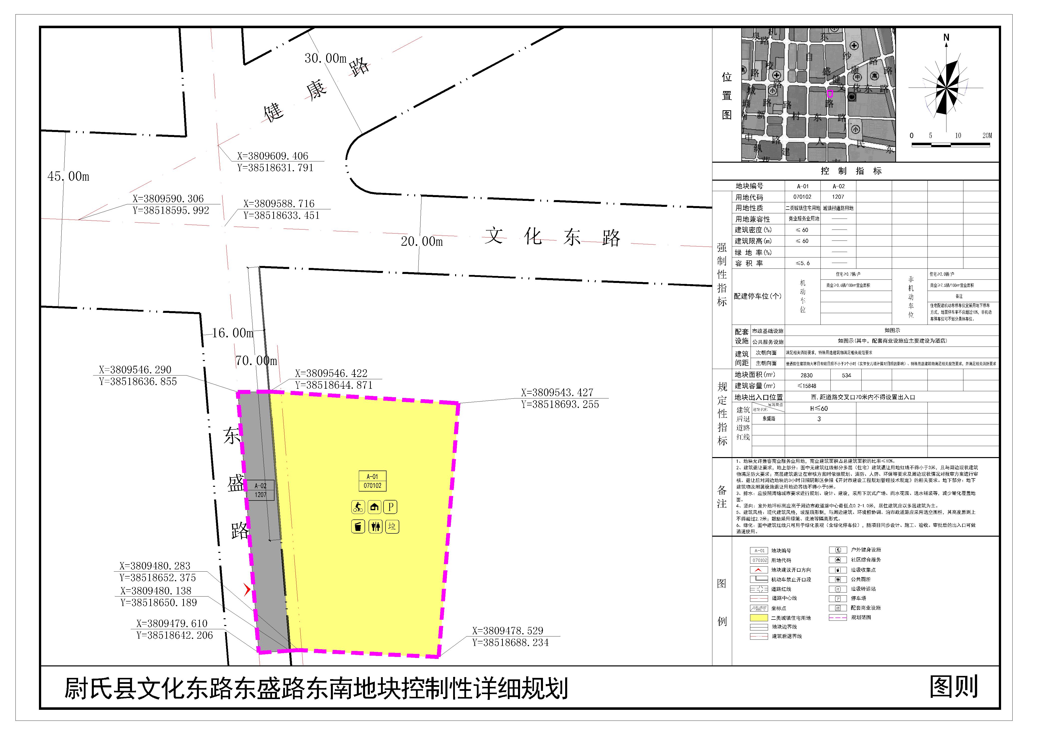 尉氏县文化东路东盛路东南地块位于尉氏县文化东路东盛路东南,规划范围内用地性质为二类城镇住宅用地、城镇村道路用地。详见附图“尉氏县文化东路东盛路东南地块控制性详细规划(图则)”。