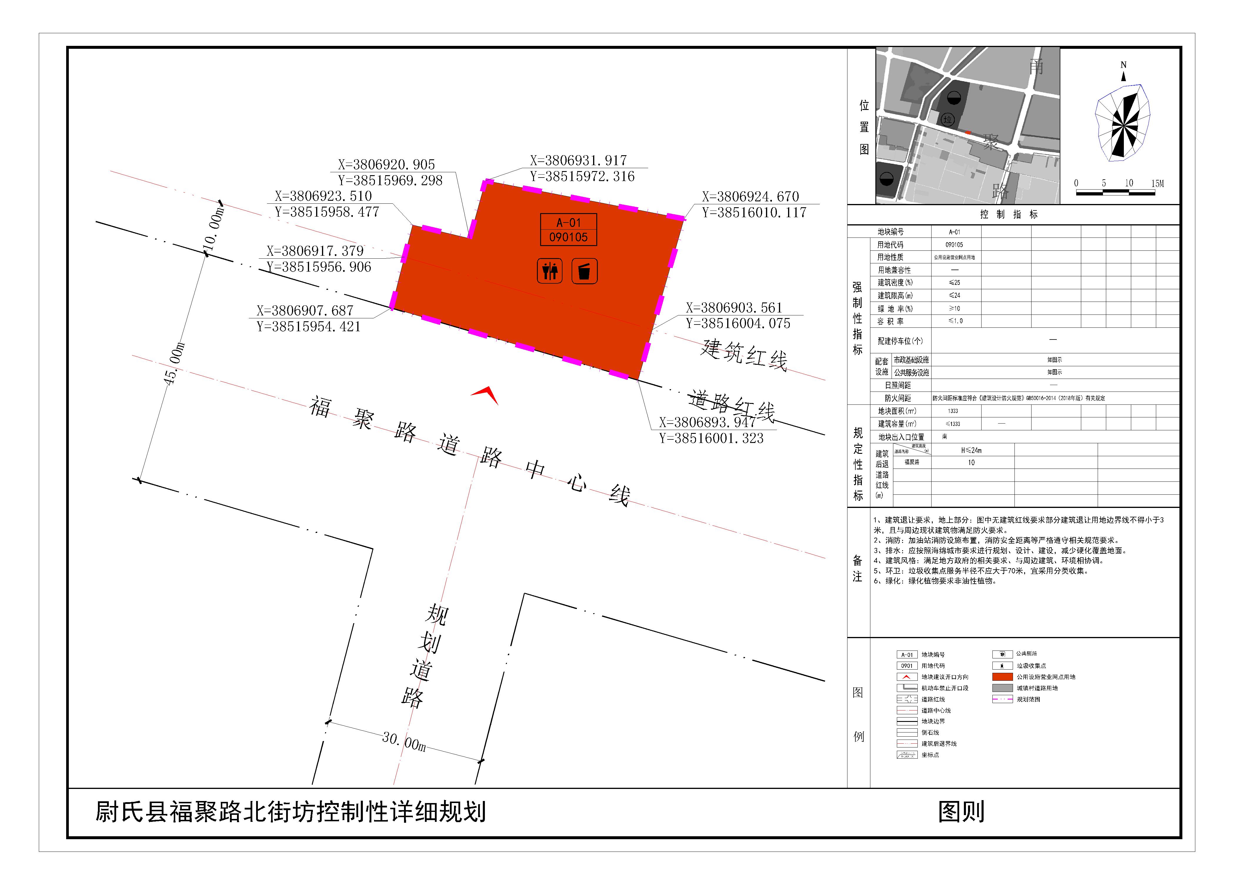 尉氏县福聚路北街坊位于尉氏县福聚路北,规划范围内用地性质为公用设施营业网点用地。详见附图“尉氏县福聚路北街坊控制性详细规划(图则)”。