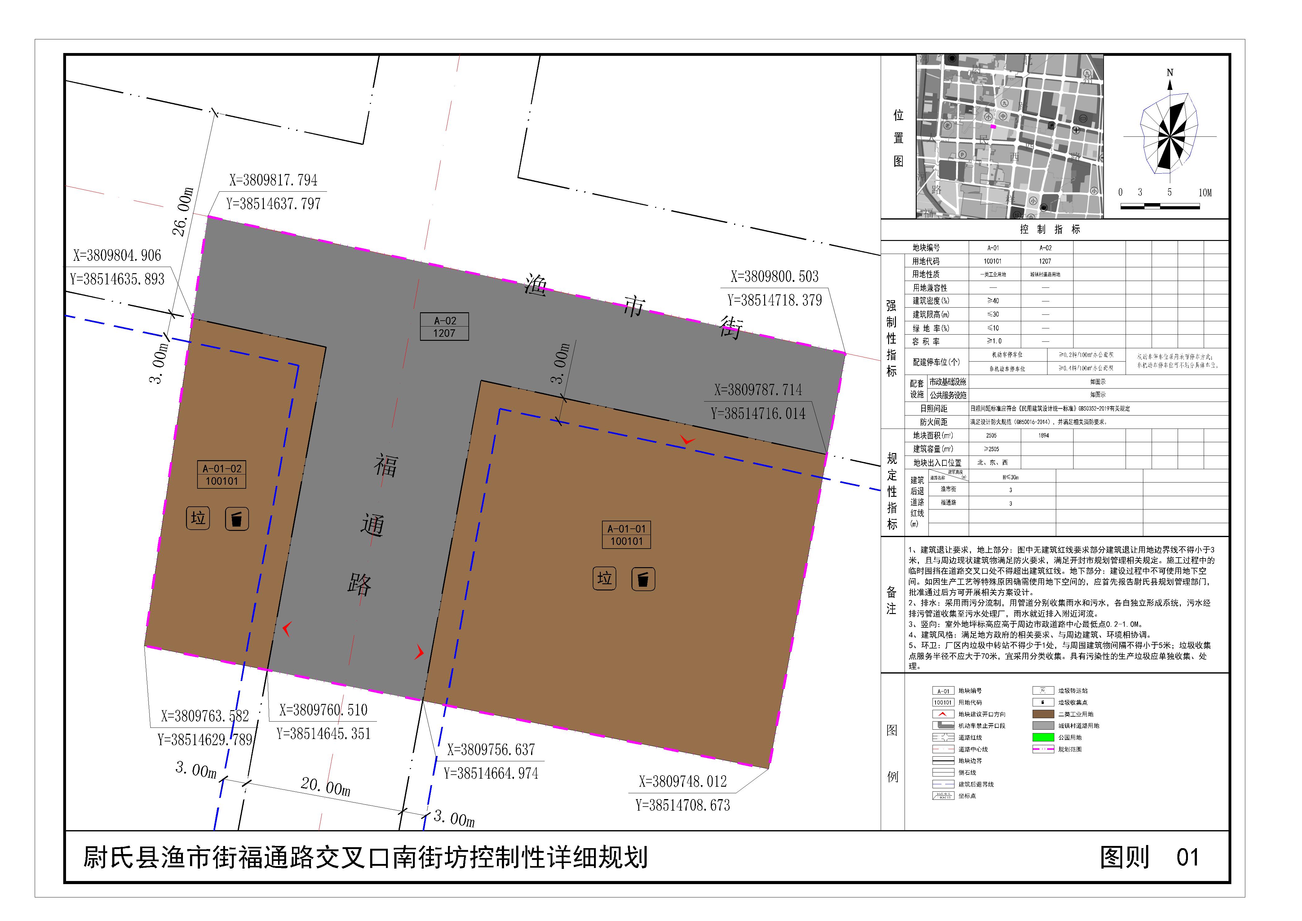 尉氏县渔市街福通路交叉口南街坊位于尉氏县渔市街福通路交叉口南,规划范围内用地性质为一类工业用地、城镇村道路用地。详见附图“尉氏县渔市街福通路交叉口南街坊控制性详细规划(图则)”。