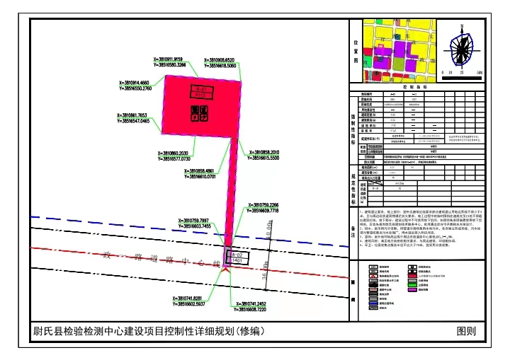 尉氏县检验检测中心建设项目位于尉氏县政一路北侧,原规划该地块用地性质为行政办公用地,现拟规划该地块用地性质为为公共管理与公共服务用地,其他指标不变。详见附图“尉氏县检验检测中心建设项目控制性详细规划(修编)(图则)”。