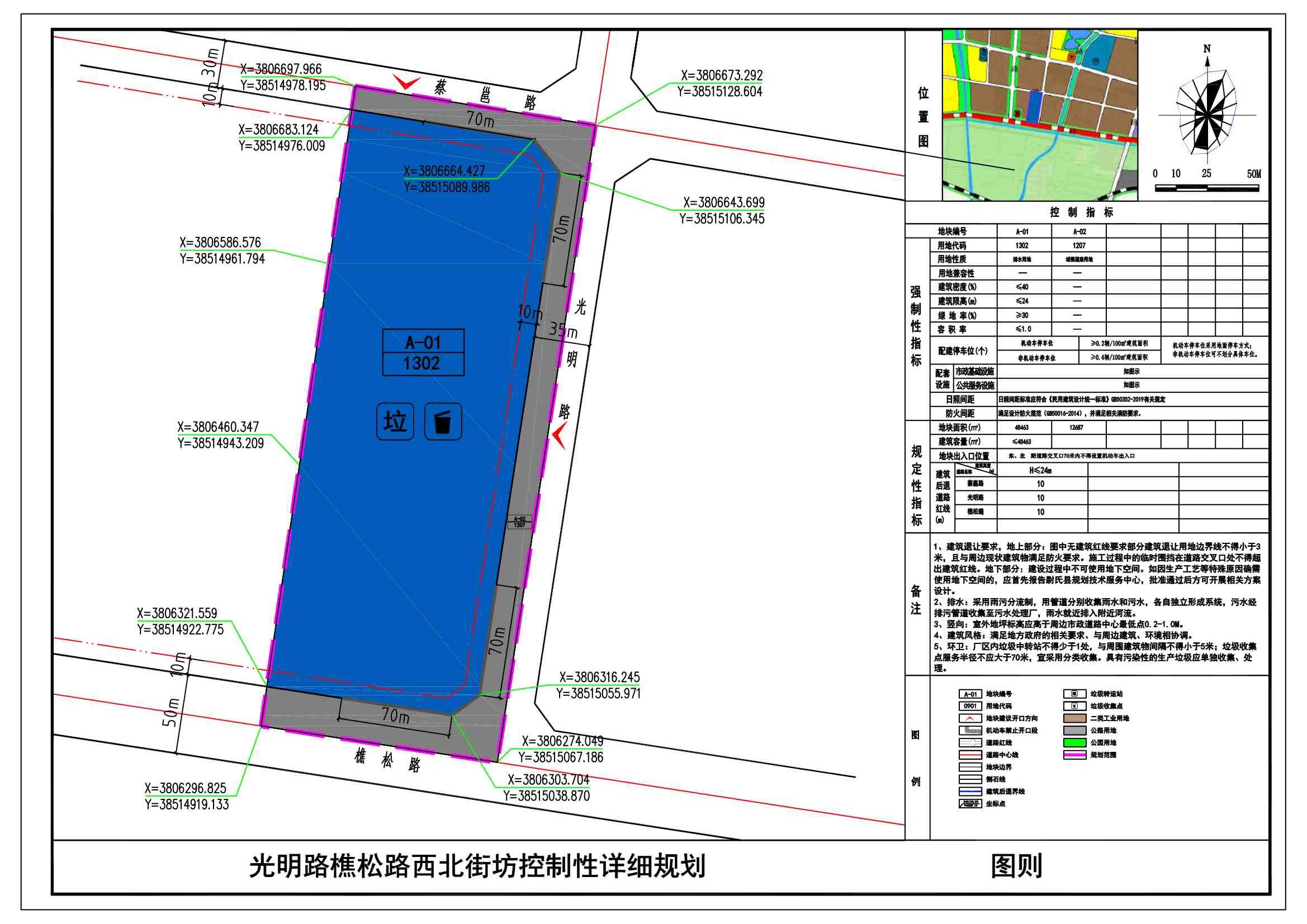 光明路樵松路西北街坊位于尉氏县城光明路与樵松路交叉口西北,规划范围内用地性质为排水用地、城镇道路用地。详见附图“光明路樵松路西北街坊控制性详细规划(图则)”。
