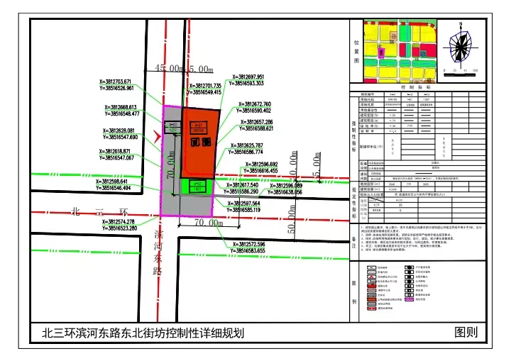 北三环滨河东路东北街坊位于尉氏县城北三环与滨河东路交叉口东北,规划范围内用地性质为公共设施营业网点用地、公园绿地、城镇道路用地。详见附图“北三环滨河东路东北街坊控制性详细规划(图则)”。