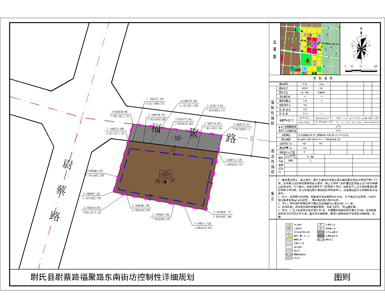 尉氏县尉蔡路福聚路东南街坊位于尉氏县城南部,尉蔡路东、福聚路南,规划范围内用地性质为二类工业用地、城镇道路用地。详见附图“尉氏县尉蔡路福聚路东南街坊控制性详细规划(图则)”。