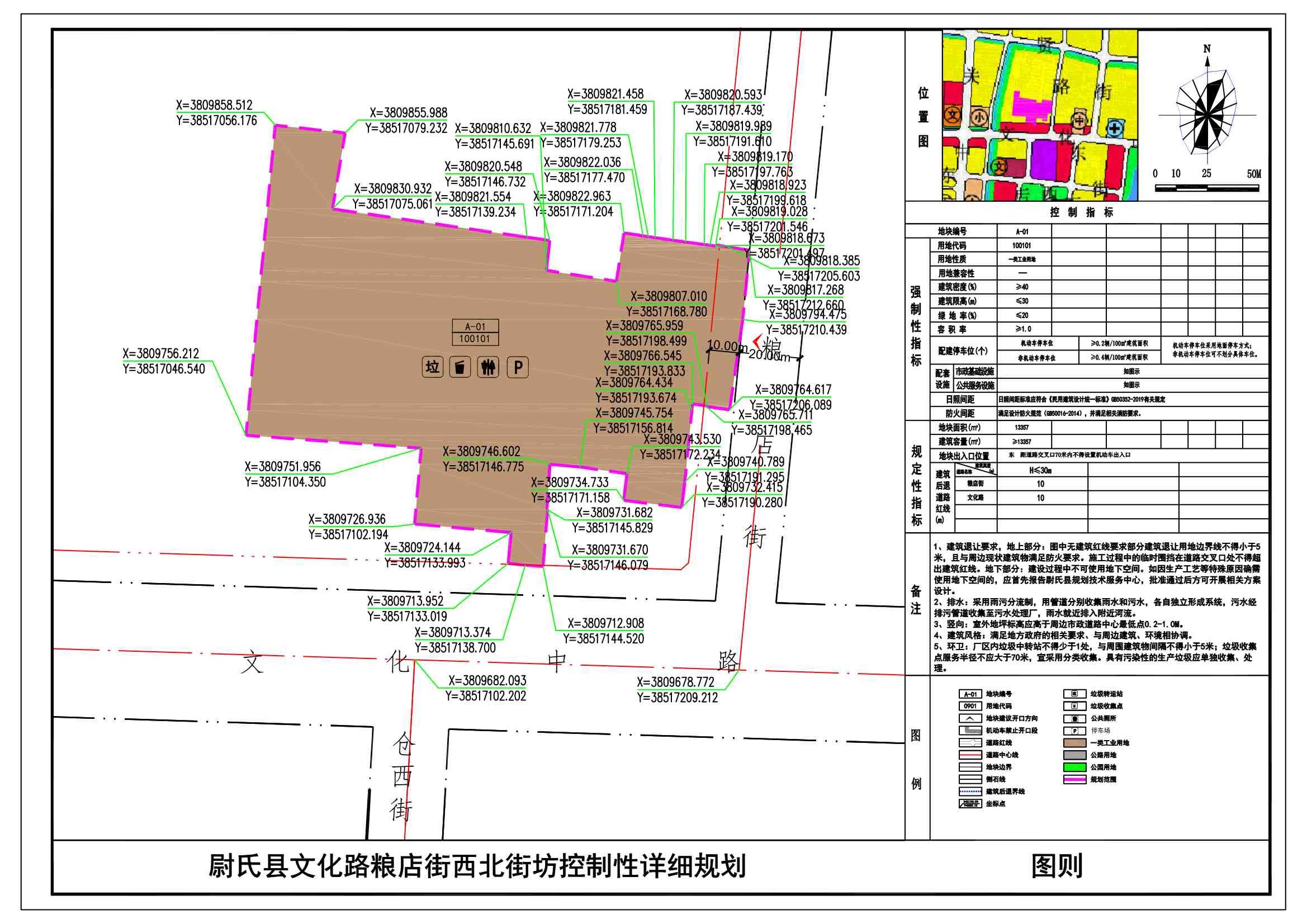 尉氏县文化路粮店街西北街坊位于尉氏县城文化路粮店街交叉口西北,规划范围内用地性质为二类城镇住宅用地。详见附图“尉氏县文化路粮店街西北街坊控制性详细规划(图则)”。