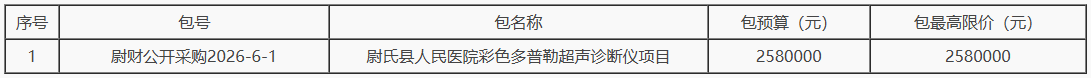 5.1.采购内容:尉氏县人民医院采购彩色多普勒超声诊断仪1台,具体要求详见招标文件“第五章 项目采购需求”。