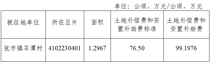 征地补偿标准按照《河南省人民政府关于征收农用地区片综合地价有关问题的通知》(豫政〔2023〕28号)及有关规定执行。将土地补偿费和安置补助费支付给被征收土地农村集体经济组织,支付方式为转账。