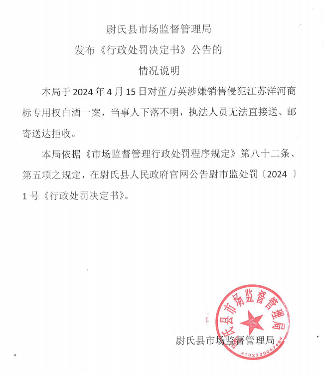 尉氏县市场监督管理局《行政处罚决定书》尉市监出发[2024]1号