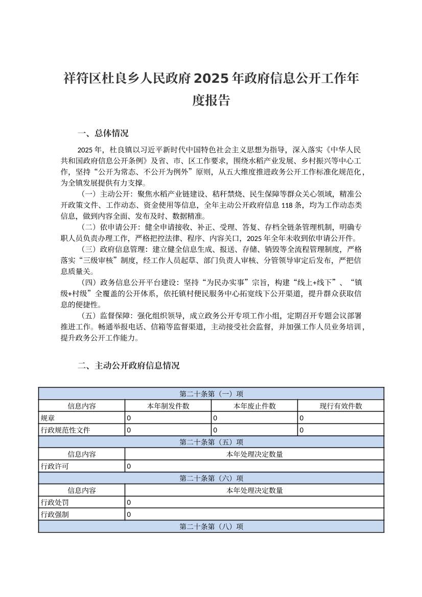 祥符区杜良乡人民政府2025年政府信息公开工作年度报告